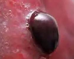 指的是突然之间,喉咙刺痛,犹如塞进一团乱麻,然后上颚位置一粒血泡迅速膨胀,吞咽困难。血泡可小可大,小者如黑豆,大者如葡萄,甚者如核桃。